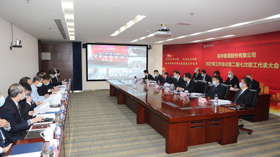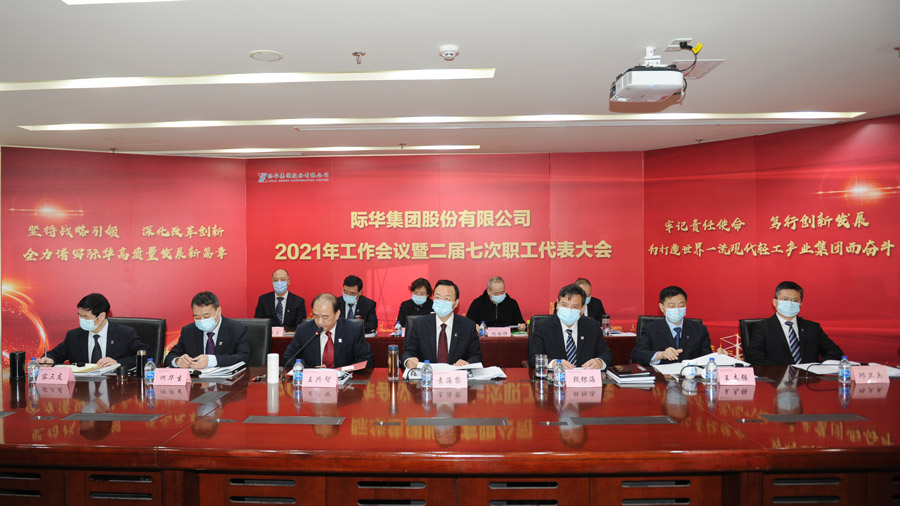 2021年1月28日,际华股份在京召开2021年工作会议暨二届七次职代会。本次会议高举习近平新时代中国特色社会主义思想伟大旗帜,深入贯彻落实集团公司年度会议精神,全面总结际华“十三五”各项工作,认真分析“十四五”面临的形势和任务,对际华股份下一阶段工作的总体要求、奋斗目标和重点工作进行部署。