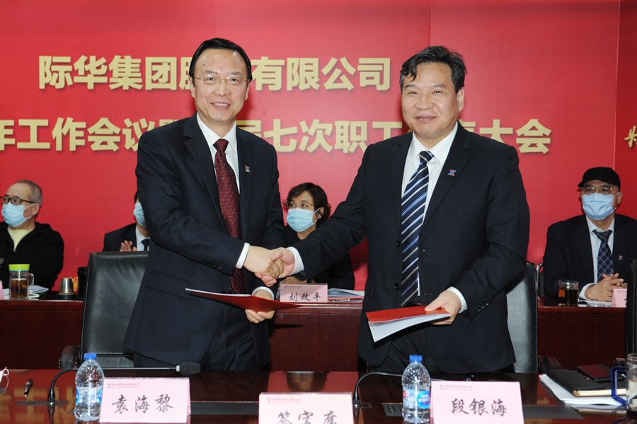 会上,袁海黎代表公司董事会与总经理段银海签订了2021年度经营业绩责任书。副总经理刘改平宣读了表彰决定,对2020年度生产经营先进单位和推动完成重大专项改革任务的先进单位进行了通报表彰。副总经理邱卫兵就评选表彰情况做简要说明。