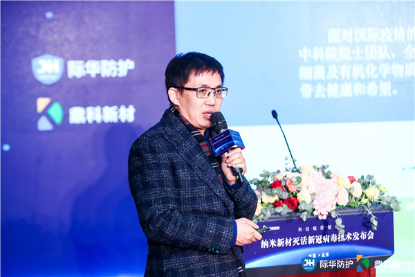 本次以“科技赋能健康”为主题的纳米新材灭活新冠病毒技术发布会,融合了中科院科研团队成果,以及际华集团、鼎科新材料集团市场转化优势,强强联合、优势互补,迅速适应当前全球新冠疫情肆虐的严峻抗击形势要求,为人类健康贡献智慧,为世界抗疫展示中国力量。本成果技术应用的产品单位,际华集团旗下南京际华三五二一特种装备有限公司执行董事夏前军说,疫情之下,我们投入了大量的资源到抗疫斗争中去,从快速转产防护服开始,到现在研发成功的这种新型灭杀“新冠病毒”复合材料,我们始终不忘初心,坚守使命。