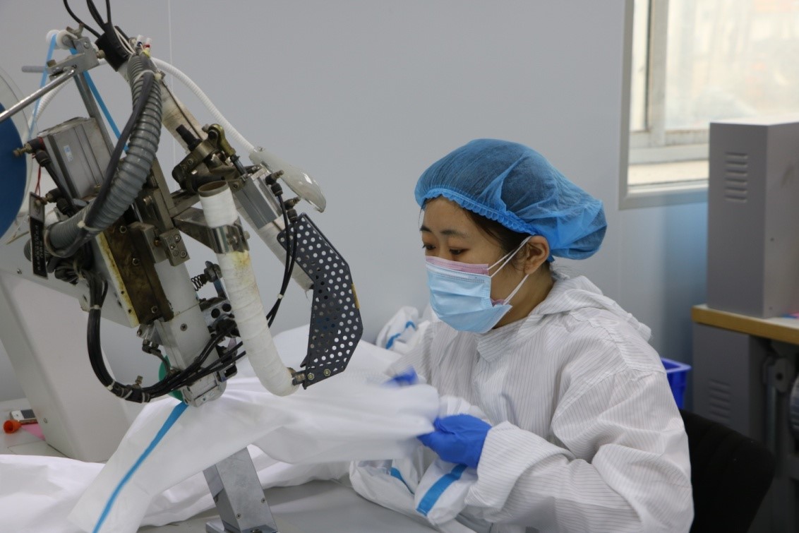 “张霞,集团公司要求我们立即投入到防护服的紧急生产任务中,需要你停止休假立即返回公司,组织技术人员对防护服的生产工艺进行研究攻关,提前做好产前准备”。“收到,我马上返回公司,组织人员立即进行工艺研究”。新兴际华集团劳动模范、际华3534公司技术处处长张霞在接到通知后,立即放弃休假赶回公司,迅速投身到医用防护服的样板打制、样品试制、工艺研究、工时测定等前期准备工作当中。为了给后续批量生产提供充足时间,张霞带领技术团队全力攻关、争分夺秒,在1月31日凌晨找准了医用防护服的生产难点和易错点,仅用了不到1天的时间便将产前技术工作全部准备就绪,并在1月31日早上赶制出首件防护服样衣,为公司批量生产赢得了加速度。