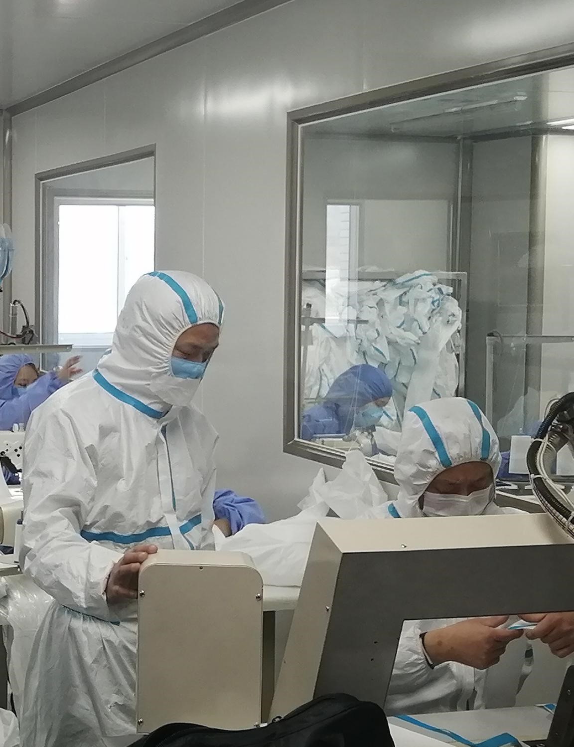 四川省“五一劳动奖章”获得者、际华3536公司研发中心主任马勇,带领研发中心成员两个小时就做出了防护服样品,创造了新的打样速度。防护服生产关键工序是压胶条,他带领技术人员经过反复试验,总结出压好胶条关键是温度和速度的掌控,且胶条宜长不宜短的诀窍。实验成功后,马勇脸上露出了孩童般幸福的微笑:“这下,我们可以为大规模生产做技术指导了!”在负责无菌车间生产协调过程中,他又面临着新的困难。按照要求,封闭的无菌车间内需要保持恒温20度,进去的所有人和东西必须消毒,车间员工们穿着“笨重”的防护服,在里面汗流浃背,出来却是寒风彻骨。前线医用防护服告急,为了尽快提升产量,他组织人员三班倒,大家在进车间前自觉少吃少喝,争分夺秒抢产量保质量。