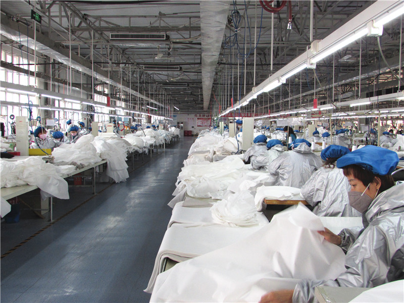 所属企业充分发挥能打仗、打胜仗的军需精神,充分运用紧急任务生产的经验和技巧,将生产任务倒排到日,分保时、时保日、日保周,用科学的计划指导生产,用先进的方式组织生产,用严格的管理提高生产,用优质的服务保证生产,实现三天投产、每天上产、天天增产。广大干部职工全身心投身紧急生产、全力上产抢产。党员干部勇于带头,主动请战,立下军令状,写下决心书,职工们响应号召、不计得失、全身心投入,一门心思抢产量。许多女职工把孩子托付给亲戚照看,有的职工在白天正常生产,在后半夜还要教授新人。为了不影响生产进度,大家尽量少喝水甚至不喝水,每天加班到深夜,放弃了休息和家庭的团圆。职工们还自我加压,在目标任务的基础上再加一点、再多干几十件。截止目前,际华所属10户企业投入生产设备3000余台,3300余名职工奋战在防护服生产一线,产量日创新高。“我的老本行还没有忘,经验比年轻人多,作为一名党员,只要企业有需要,我随时都能重新返岗”“就是不给钱也要先把活干起来”“关键时刻我不能掉链子”,等等,在战“疫”保障生产中,他们用朴实的话语、实际的行动,诠释了军需企业职工顾全大局、迎难而上的精神风貌。