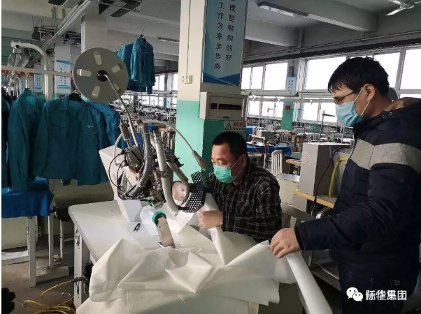 所属企业迅速行动,备产投产。在际华集团的统筹安排下,3502、3503、3521、3534、3536、3543、5302、7555公司等第一批试产防护服的企业,迅速行动,克服一切困难,宣贯标准、细化工艺、调配设备、办理许可、采购原料、制作样品以及协调生产组织,同时主动与属地政府部门对接,确保应急保障生产任务的顺利开展。