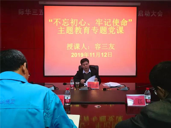副总经理段银海于11月13日到际华3509公司讲授专题党课,3509领导班子成员及全体机关党员参加了党课学习。段银海强调,共产党人的“初心”和“使命”就是为中国人民谋幸福,为中华民族谋复兴。国有企业是共产党执政的基础,必须旗帜鲜明的讲政治,要做到党对企业的领导一以贯之,加强党的建设一以贯之,建立现代企业制度一以贯之,做到股东有回报,职工有收入,政府有税收,企业有发展,实现国有资产的保值增值,提高国有经济的竞争力,放大国有资本的功能。要求大家明确企业改革发展的职责,确保3509公司持续高质量发展。