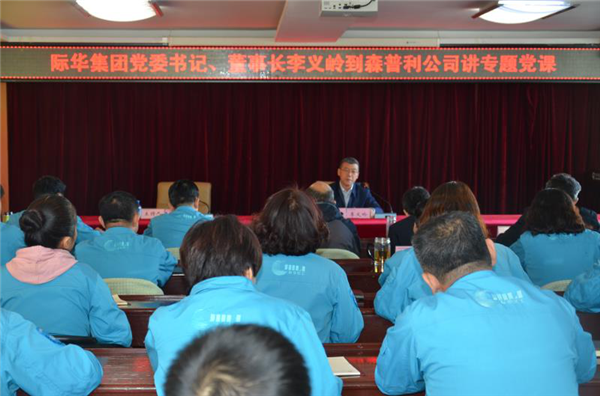 在调研期间,李义岭还为际华森普利公司领导班子及中层以上党员同志讲授了“不忘初心、牢记使命”主题教育专题党课。