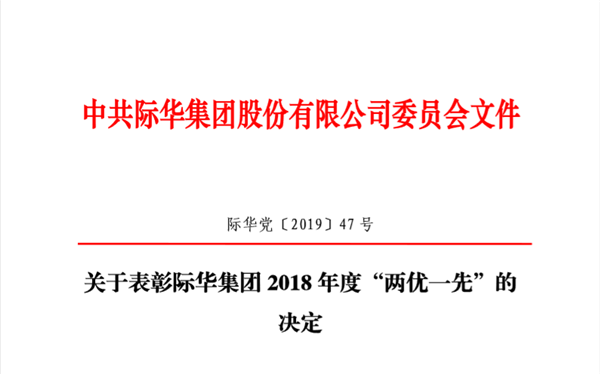 2018年以来,际华集团各级党组织带领广大共产党员深入学习贯彻习近平新时代中国特色社会主义思想和党的十九大精神,紧密围绕企业中心任务,充分发挥党委的领导作用、党支部的战斗堡垒作用和共产党员先锋模范作用,认真贯彻执行党的路线方针政策和上级党组织重要决策部署,积极推进企业发展和改革调整工作,涌现出一大批锐意进取、求实创新、敬业奉献的先进集体和个人,为持续提升党建工作质量、推动企业改革发展作出了重要贡献。集团党委号召集团各级党组织和广大党员学习优秀典范,牢记“两大使命”、投身“两个一流”,立足岗位、勇于担当、履职尽责,以更加高昂的工作热情、更加扎实的工作举措,为不断提高际华集团发展质量作出新的更大的贡献!