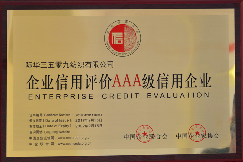 近日,际华3509公司被中国企业联合会、中国企业家协会评为“AAA级信用企业”。这是中国企业信用评价委员会权威部门对3509公司在产品质量、企业服务和企业信誉方面所做努力的充分肯定。