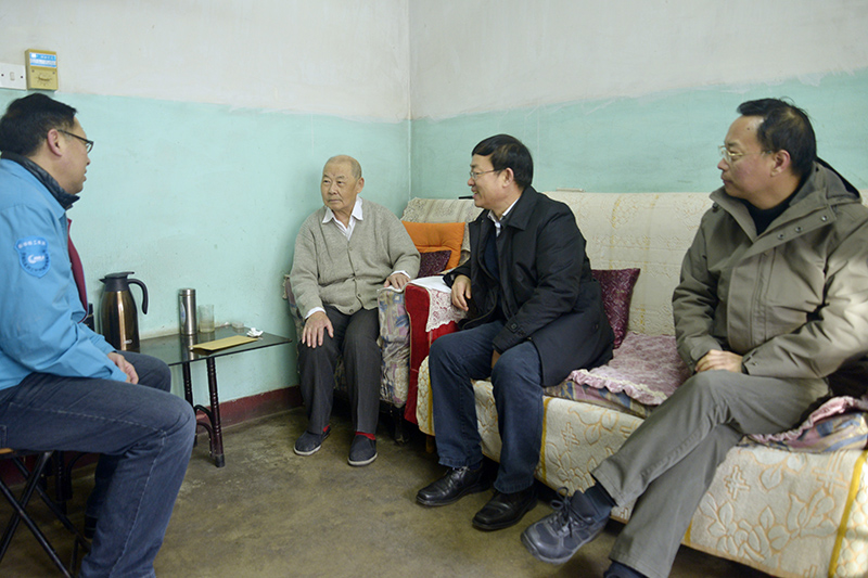 在退休职工家中,张同波、袁海黎与其亲切交谈,详细了解他们的生活及家庭情况,表达组织的亲切问候,并送上慰问金。
