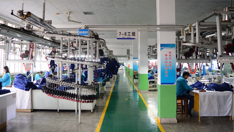 3534公司生产现场 际华3534公司缝纫十车间按照技术能力和年龄结构特点,对生产线进行重新架构,随机应变打破常规生产方式,提前谋划工序、模板、压脚机具,取经学艺,老带新、传帮带、做到快速跟进,通过班组内人均产量、计划完成率的对比,调动生产积极性,提高工作水平。包装六车间有效利用现有整烫台位,结合自身工序特点不等不靠,强化质量严把环节关,创新工作思路,调整生产布局,大幅度降低生产在制品,提高了整烫包装的效率,当日收到成品当日全部包装完毕,做到了日清日结,确保成品的及时发运。生产中各生产车间不断刷新着一次又一次的生产记录,日产量也从400上升到500、600······,他们的努力,赢得了一次又一次的赞誉和好评,极大地鼓舞和带动了全体员工的斗志和干劲。