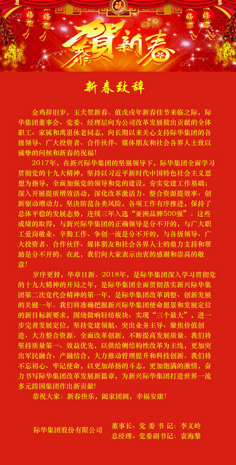 际华集团新春致辞