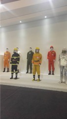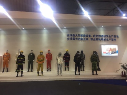 本次展会际华集团展示了用于应急的功能性系列防护服装产品,包括新一代消防灭火服、生化防毒服、应急救援工作服等;系列防护鞋靴产品,包括阻燃、耐高压、防静电、防砸、防穿刺、防水保暖等功能性鞋靴;系列防护装具产品,包括防弹衣、防弹头盔、手套、护膝护肘等;以及功能性纺织面料、携行装具、救援救灾帐蓬睡具等产品。