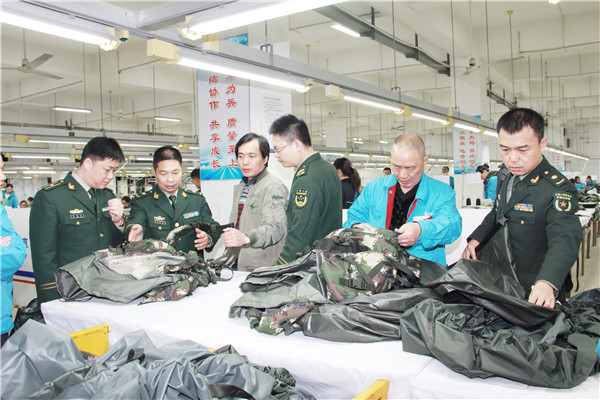 军事科学院相关领导和技术人员宣贯了技术标准和要求,参会领导及代表参观了际华3521公司武警单兵作战综合保障系统的三条示范生产线,际华3521公司执行董事夏前军向与会代表作了介绍。