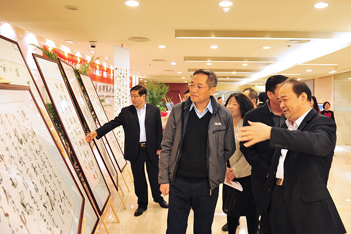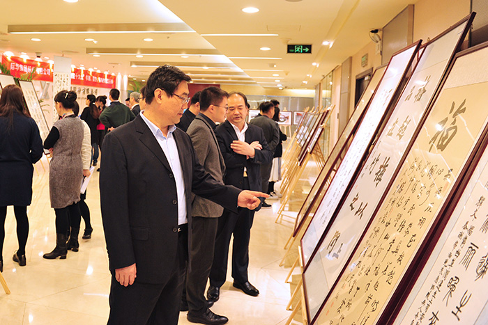 在举国欢庆、喜迎党的十九大胜利召开之际,为展现际华集团广大职工的精神风貌和文化建设成就,团结和引导际华集团广大干部职工以更加饱满的精神,更加昂扬的斗志,更加优异的成绩迎接党的十九大胜利召开,际华集团 “共筑中国梦 喜迎十九大”书画、绘画、篆刻作品巡回展在京开幕并巡展。10月16日上午在公司总部机关举行了开幕式揭牌仪式,际华集团董事长、党委副书记李学成、总经理韩文虎为本次巡展揭牌,党委副书记、纪委书记王兴智致辞,工会主席刘海权宣读表彰决定。
