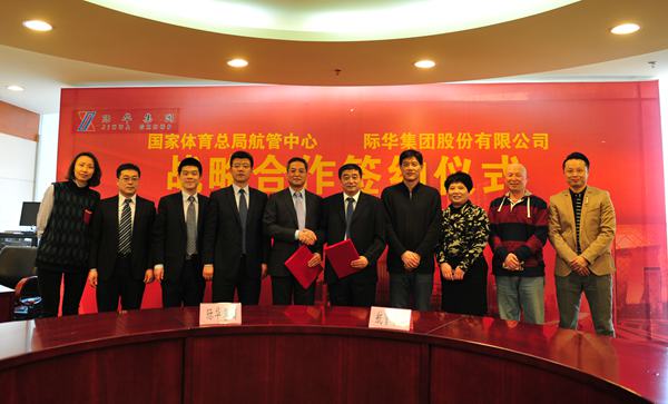 际华集团董事长李学成、常务副总经理李义岭,国家体育总局航管中心主任贾冰、副主任丁鹏等出席签字仪式。