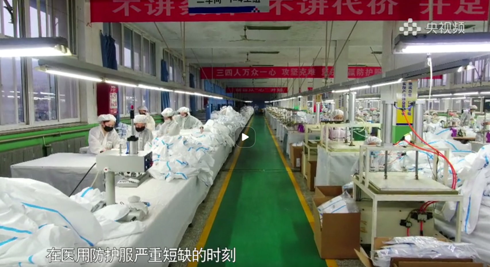 在医用防护服严重短缺的时刻,新兴际华集团下属10余家企业暂停了其他产品订单,所有生产线全部单一生产防护服,从零起步,到日产15万套,稳定了支撑当时全国防护服三分之一的产量。