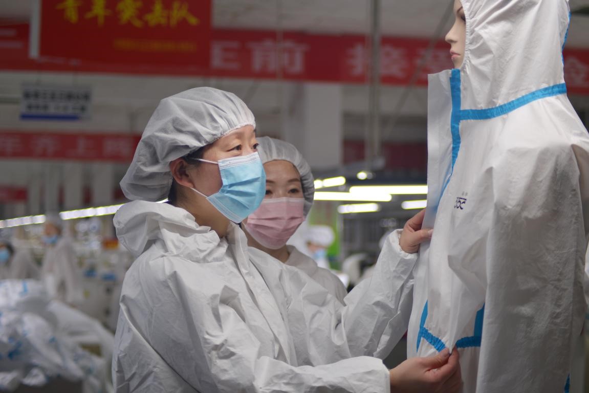 新兴际华集团劳动模范、际华3534公司技术处处长张霞在接到通知后,立即放弃休假,迅速投身到防护服生产前期准备工作中。她带领技术团队全力攻关、争分夺秒,找准防护服生产难点,仅用半天时间,便将产前技术工作全部准备就绪,为公司批量生产赢得了加速度。