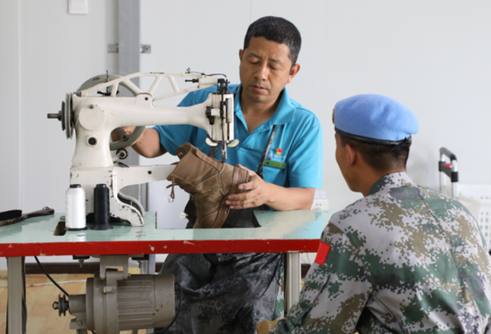 由于训练强度大,鞋底磨损严重,战士们常常需要换鞋底。际华3514公司技检书记龚建微负责鞋靴组,他介绍,战士们训练时都比较喜欢穿旧鞋,因为旧鞋经过磨合更合脚,所以很多人会不断给鞋子修修补补。