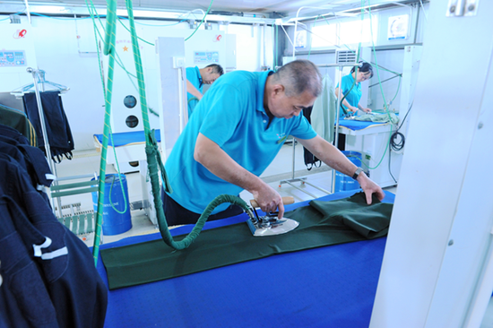这群平均年龄超过40岁的技术人员,还要应对平均每天1000多套/件服装鞋靴的修饰、保养、洗涤。由于训练强度大,战士的服装、鞋靴磨损快,服务队每天工作10余小时,经常加班到晚上十一二点。