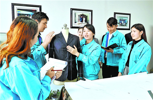 11月3日,七五五五公司服装研发工作室技术员向新员工传授服装制作技艺。