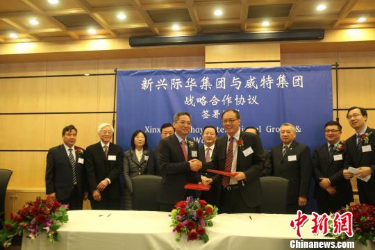 中新网纽约5月9日电 (记者 邓敏)中国央企际华集团股份有限公司9日在纽约与美国威特集团签署战略合作协议,这是际华集团首次进军美国市场。签署战略合作协议。邓敏 摄
