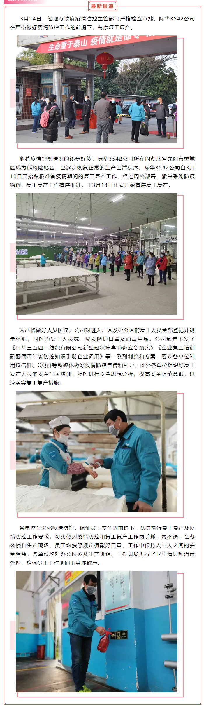 际华3542公司有序复工复产