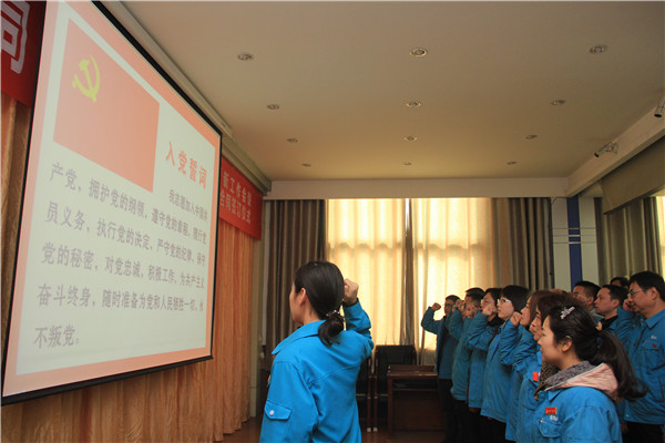 支部党员首先重温了入党誓词。面对党旗,经营支部参会的27名党员同志高举右拳,庄严宣誓,以铿锵有力的声音表达不忘初心、牢记使命的信念和决心。
