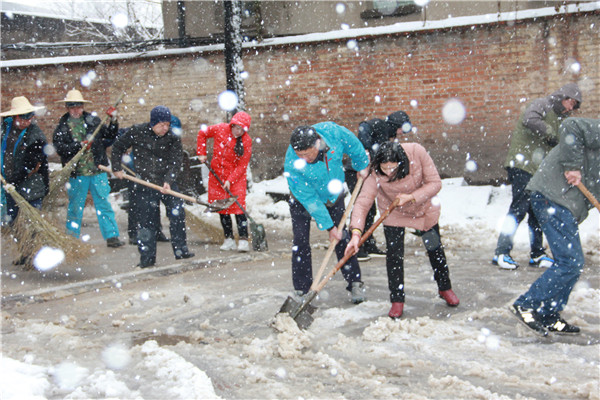 3日夜里,一场大雪如期而至,洋洋洒洒飘个不停,不到5个小时积雪厚度已达20厘米。 4日早上六点半,党委书记李修元、执行董事夏前军立即组织综合管理部、党群工作部、生产安全生产部、技术部等部门人员100多人开始清理厂内道路积雪,大家有的挥舞铁锹铲雪,有的挥动扫帚,有的用雪铲推雪,一片热火朝天的景象。办公楼前、花园两侧等公共道路是广大职工进出较多区域的积雪也被集中清除。经过一个多小时的奋战,把几条道路打扫得干干净净,并铺上防滑草垫,往来的职工可以放心地行走。