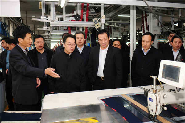 期间,运城市代市长朱鹏一行深入公司生产一线,先后参观了裁剪车间、大檐帽专业生产线、智能吊挂生产线和包装整烫车间等工作现场,详细询问了公司的生产经营情况。他们对公司如此的生产现场精细化管理水平感到高兴。特别是对公司全自动电脑裁床、自动模板机,先进的整烫设备等信息化加智能化生产设备的推广与使用,竖起大拇指连连称赞!