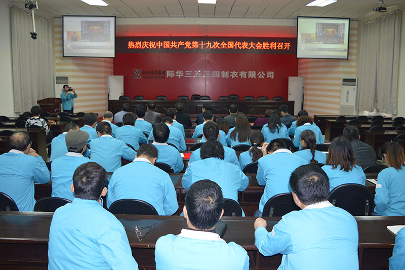 10月18日上午,万众期待的中国共产党第十九次全国代表大会隆重召开!际华3534公司利用电视、广播,组织总厂、廊坊分公司、运城工业物流园分公司三个会场连线央视直播网,共同感受十九大召开的伟大时刻。公司领导、党支部书记、生产战线的党员干部及职能处室所有职员统一着装,佩戴党徽,早早就坐满会场,无数双眼睛同时定格在同一画面,脸上写满喜悦和期盼!