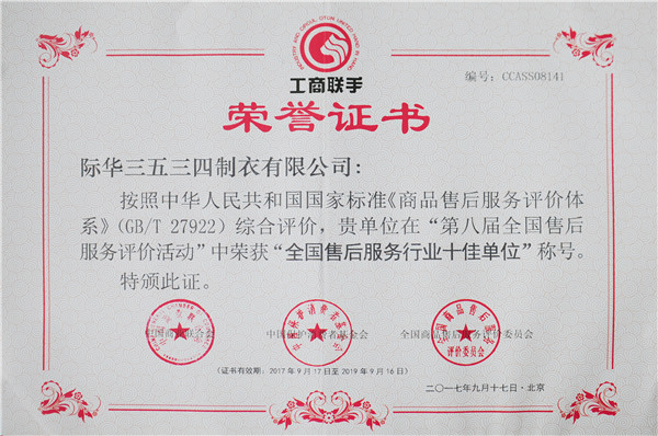 近日,中国商业联合会、中国保护消费者基金会、全国商品售后服务评价委员会联合举办的“第八届全国售后服务评价活动”在北京举办,际华3534公司凭借多年来优秀的服务态度与服务形象,从众多企业中脱颖而出,荣获“全国售后服务行业十佳单位”殊荣。