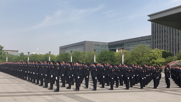 5月1日,徐州市城市管理执法队伍统一服装着装活动在徐州市新城区市行政中心南广场举行。首批1000名城管执法队员穿上了以藏青色及天空蓝色,搭配金色标志的全国统一城管执法制式服装。换装后的城管队员精神抖擞,意气风发,向社会展示出威武之师、文明之师的新形象、新风貌,也预示城市管理工作正式迈入法制化、规范化的新时期。这次徐州城管统一换装,在全国地级市尚属首家,住建部城市管理监督局局长王早生以及江苏省暨徐州市有关领导出席了换装仪式。