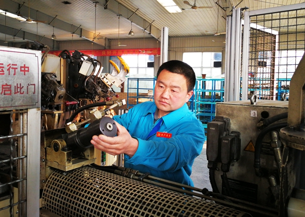 勤奋好学,孜孜追求。针对进口德士马进口设备配件价格昂贵,来回发货周期长的实际情况,陈虎查阅相关资料对设备进行技术改造,利用国产器件替代或自己动手制作。机器单工位控制板每个需要7000多元,而且容易损坏。由陈虎试验制作的控制板可完全替代进口配件,仅此一个配件就可为公司节约6000多元,经过不断吸收、改造,进口设备上的冷水循环系统、油泵恒温系统,硫化温控器件等,每年可为公司节省资金70多万元。