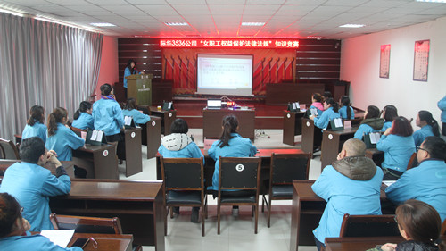 3月3日,际华三五三六公司工会以“依法维护女职工合法权益和利益”为主题,开展女职工权益保护法律法规知识竞赛。来自8个分工会的16名女工代表,以抢答竞赛的模式进行现场评比。