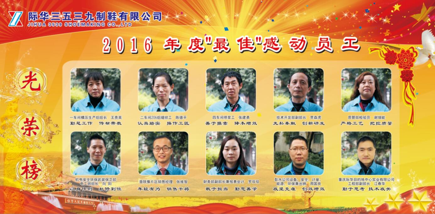 近日,际华三五三九公司2016年度评选“最佳” 感动员工揭晓。王贵英等10名职工成功当选2016年度职业道德建设“最佳”感动职工。