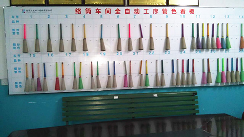 近日,陆续走进际华三五四二纺织有限公司络筒车间会议室的全自动工序员工,面对墙上一块挂满各种各样的细纱管和锥形管的管色看板议论纷纷,大家对车间这一举措赞不绝口。
