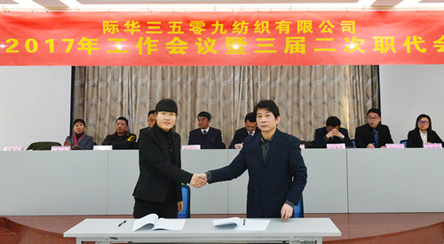 新年伊始,际华3509公司领导与各单位签订了《2017年安全生产责任状》,对2016年安全生产优胜单位和责任人进行了嘉奖。2016年位列前三名分别是准备车间、布机车间和整理车间。