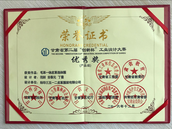甘肃省“创新杯”工业设计大赛是以适应“大众创新 万众创业”新潮流,进一步激发设计人员热情,为发掘新型设计人才搭建平台的省级设计类盛会。际华3512公司继2015年首届“创新杯”工业设计大赛后又一次组织参与比赛并荣获奖项。此次参与比赛并获奖的“武警国宾护卫队毛皮一体连体服”,是公司今年的一项重点研发项目,也是专为国家国宾护卫队摩托车手量身打造并设计的一款新型升级换代产品,是针对摩托车手工作性质和工作环境制作的特殊毛革一体皮革连体服,产品设计线条简洁大方,款式美观时尚,在克服了皮革产品臃肿的基础上,更具保暖性和柔软度。公司从2014年开始为国家国宾护卫队摩托车手制作皮裤,国宾护卫队摩托车手身着公司生产的皮裤先后参与了“9.3阅兵”、APEC会议、G20峰会等大型活动,成为了一道亮丽的风景,获得一致好评,此次获奖同时也为公司承揽新型研发项目和扩大对外宣传起到一定推动作用。