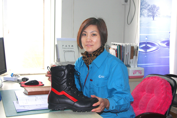 2015年,面对9.3阅兵靴交期紧、品种多、款式复杂等情况,她和团队,第一时间奔赴阅兵村,逐个测量分析,保证了阅兵靴的合脚舒适与阅兵动作实现。当三军仪仗队、武警国旗护卫队等阅兵部队跨过天安门,踢出了军威国威时,展示了企业研制实力。
