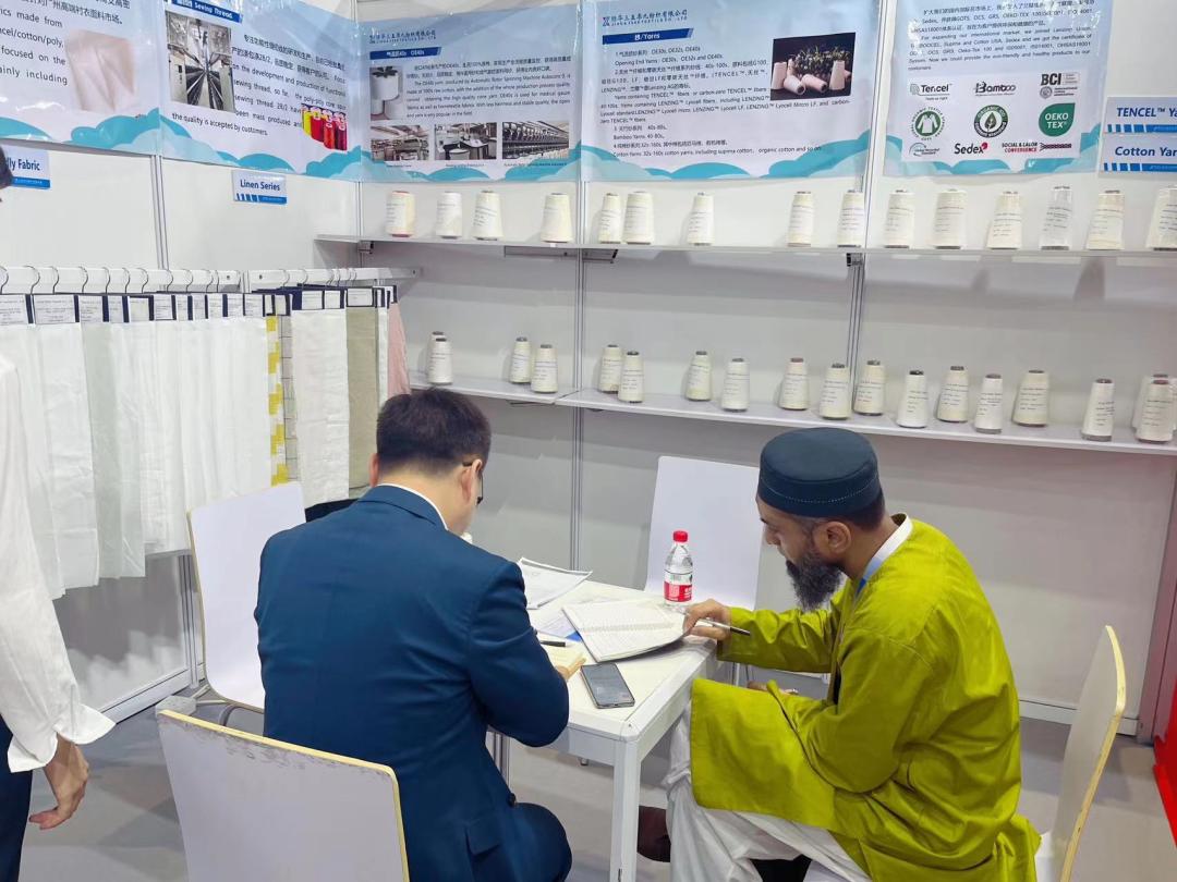 夏前军重点了解了展品面料创新、设计研发、新品拓展等情况,并在展会现场鼓励一线业务员要充分把握展会机遇、加强客户交流,全力抓订单、拓市场,不断扩大企业影响力和产品影响力。