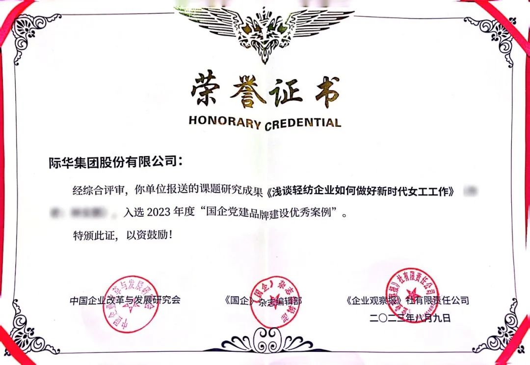 本次入选,也是继际华股份《以习近平新时代中国特色社会主义思想为指导 努力构建党建工作新格局》被评为2021年度“国企党建理论研究优秀作品”后, 再度荣获国企党建案例类荣誉。