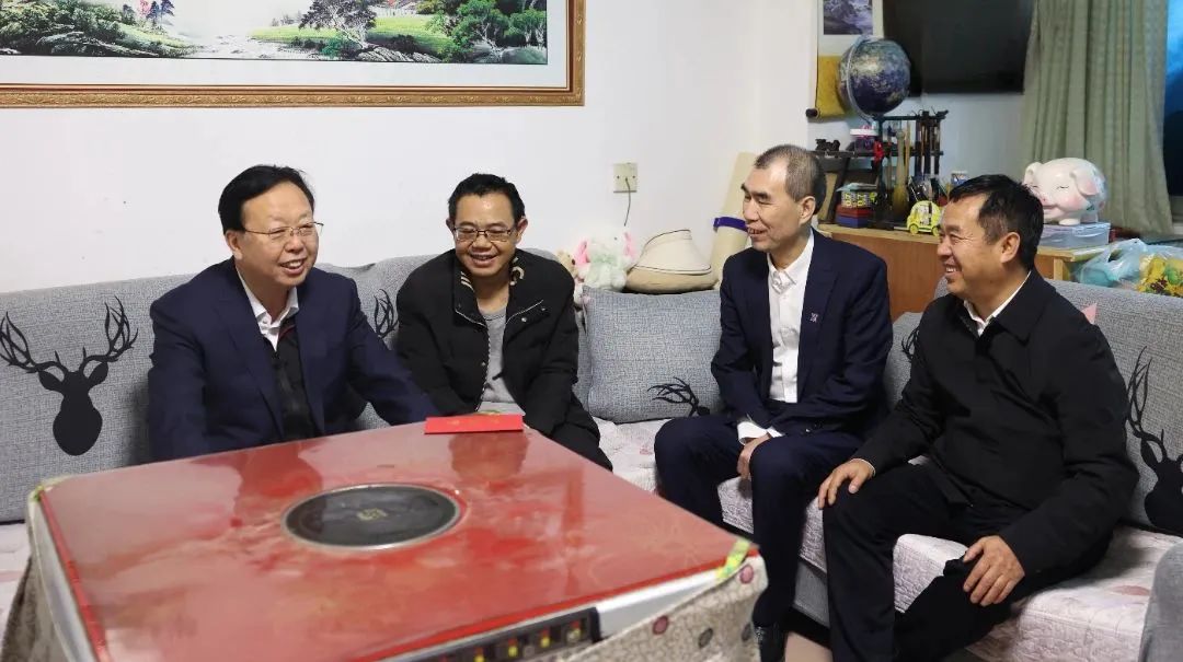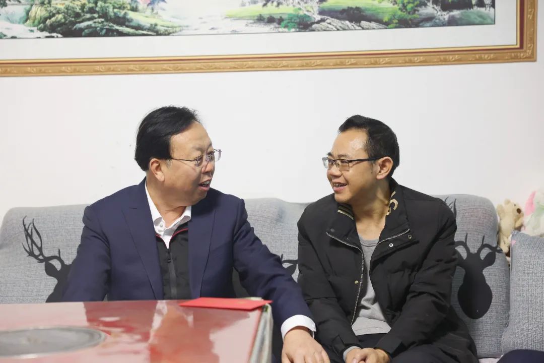 在退休老党员杜志贵家中,贾世瑞与其亲属亲切交谈,询问他和家人的身体状况、家庭情况以及存在的困难。贾世瑞对他为企业做出的贡献表示感谢,并勉励其家属要增强战胜困难的信心和勇气。