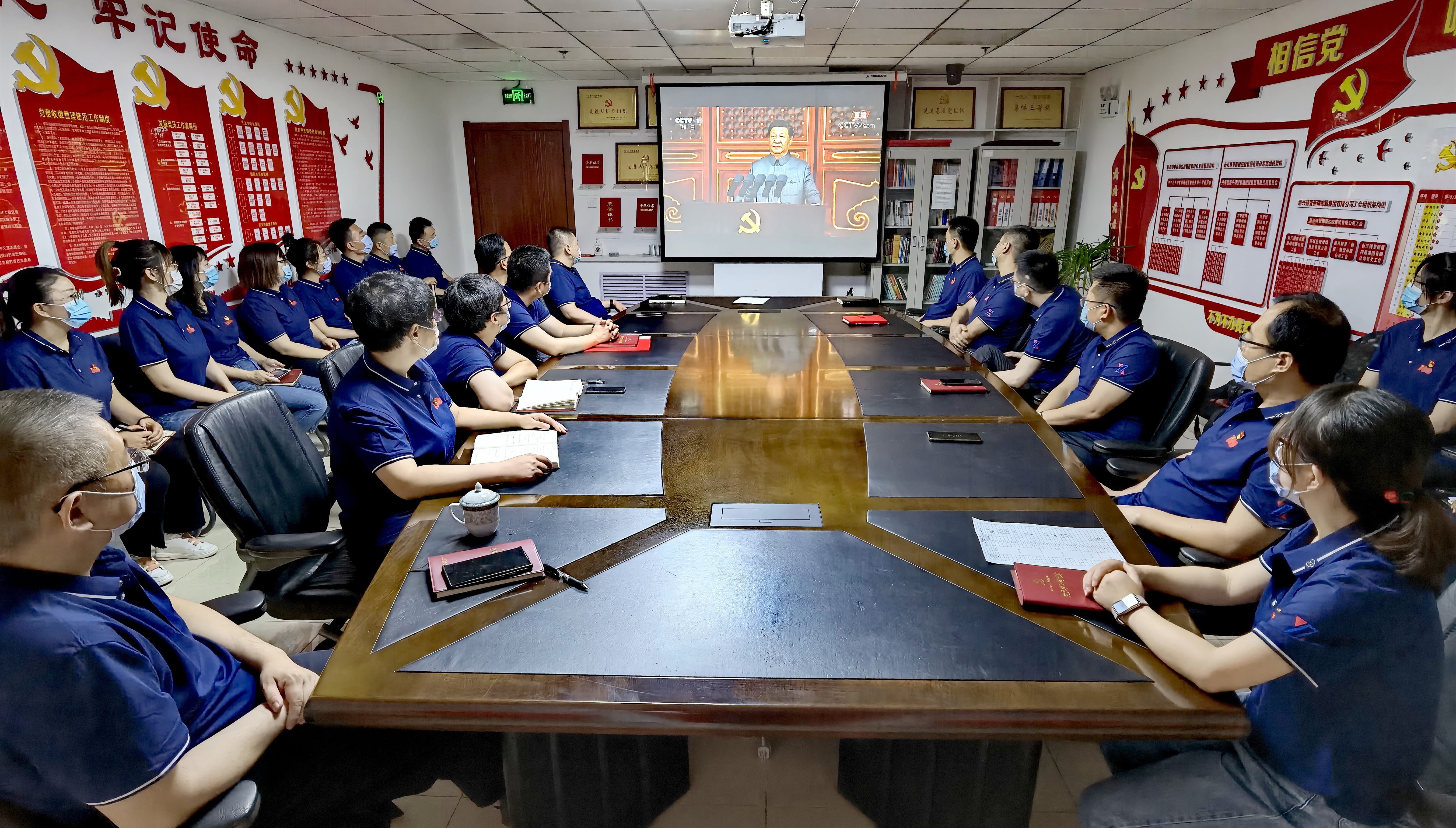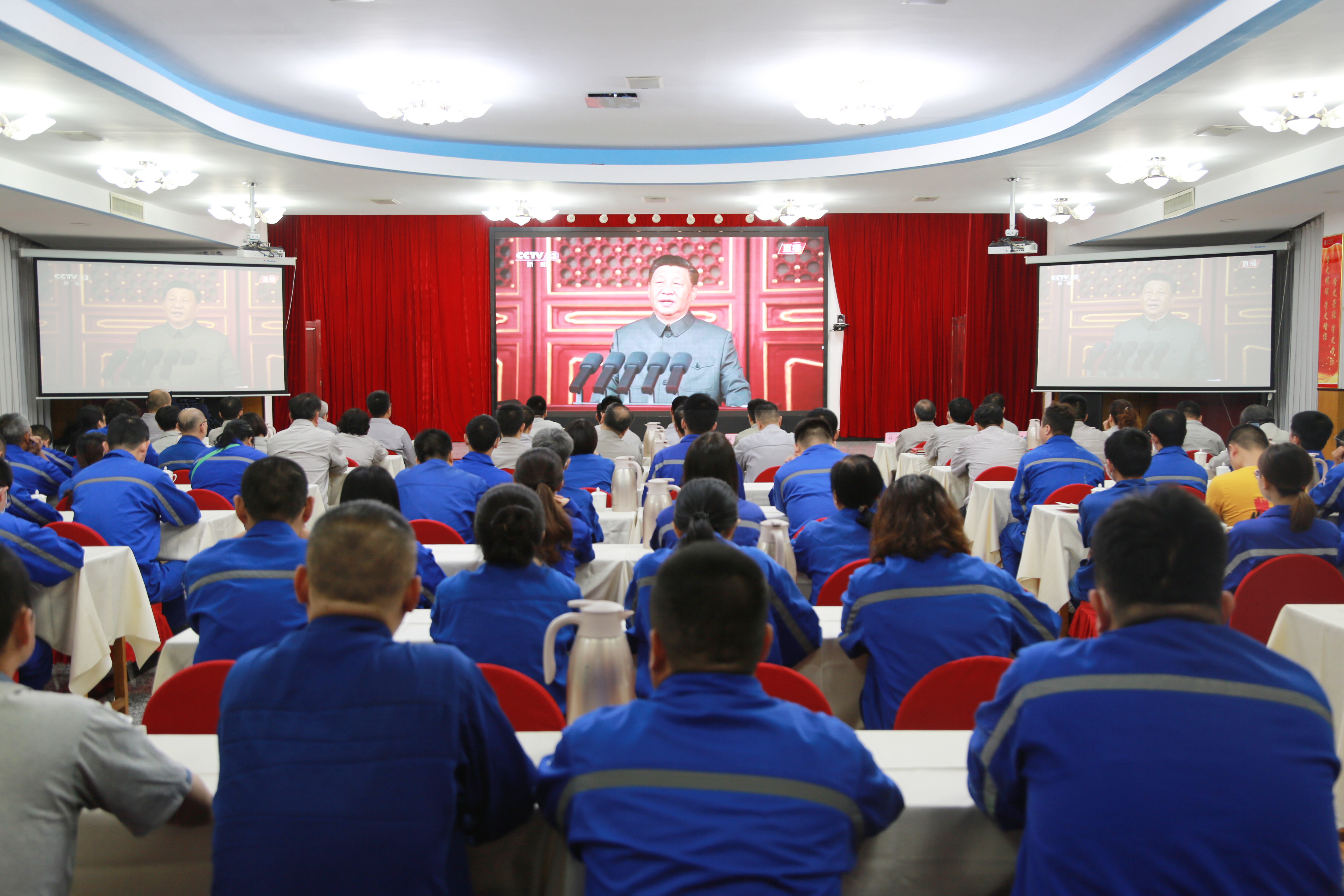 集团公司领导班子成员和机关党员干部观看大会盛况