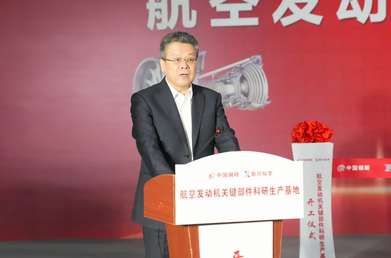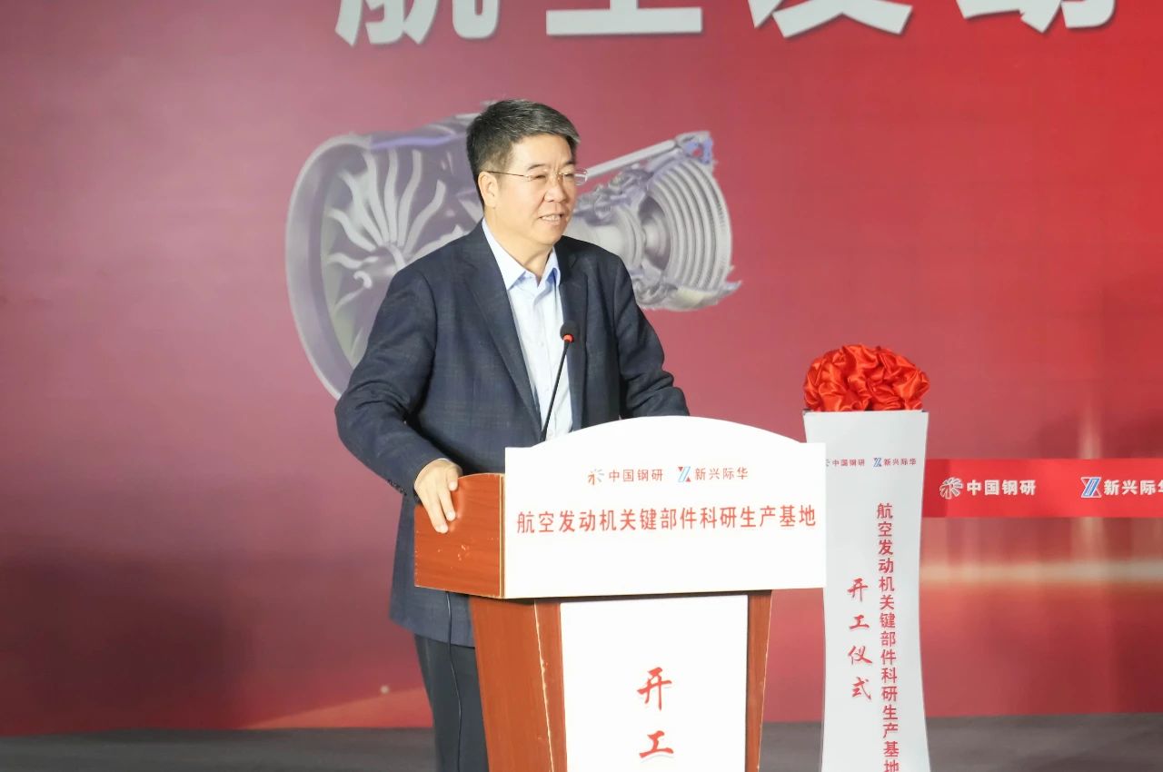 中国钢研钢铁研究总院党委书记、总经理梁剑雄主持开工仪式,并宣布航空发动机关键部件科研生产基地开工。