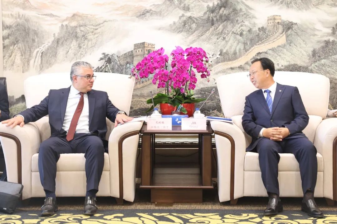 贾世瑞欢迎瓦利德·加梅尔·拉丁一行到访新兴际华集团,感谢埃及政府和埃及苏伊士运河经济区给予集团公司的关心和支持,介绍了新兴际华集团的基本情况、业务布局及未来在埃及业务拓展的方向。贾世瑞表示,近年来,在两国元首的亲自擘画和引领下,中埃全面战略伙伴关系高水平运行,务实合作成果丰硕。新兴际华集团作为中央企业,积极践行“一带一路”倡议,发挥自身优势,在球墨铸铁管、钢材等领域不断加强与埃及企业合作。贾世瑞指出,埃及作为“一带一路”的重要节点,具备良好的营商环境,新兴际华集团高度重视相关投资机会,后续将围绕在埃及的业务拓展进行充分论证,推动双方深度合作。